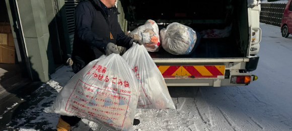 繁忙期前に倉庫にある大量の廃棄物を回収。