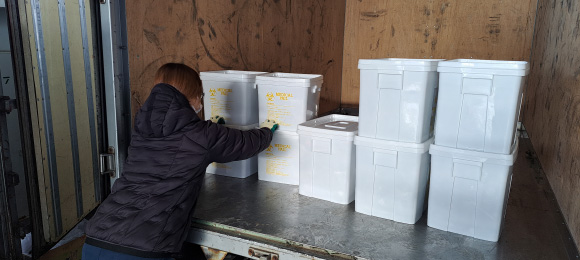 注射針や血液の付着したガーゼなどの感染性廃棄物の回収。